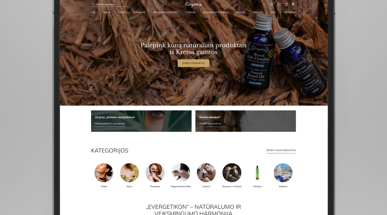 „Evergetikon“ — natūralios kosmetikos prekės ženklas iš Kretos, gimęs iš saulės šviesos, Graikijos augmenijos ir kartų patirties, tačiau senasis tinklapis to neatspindėjo.