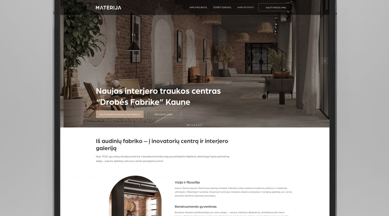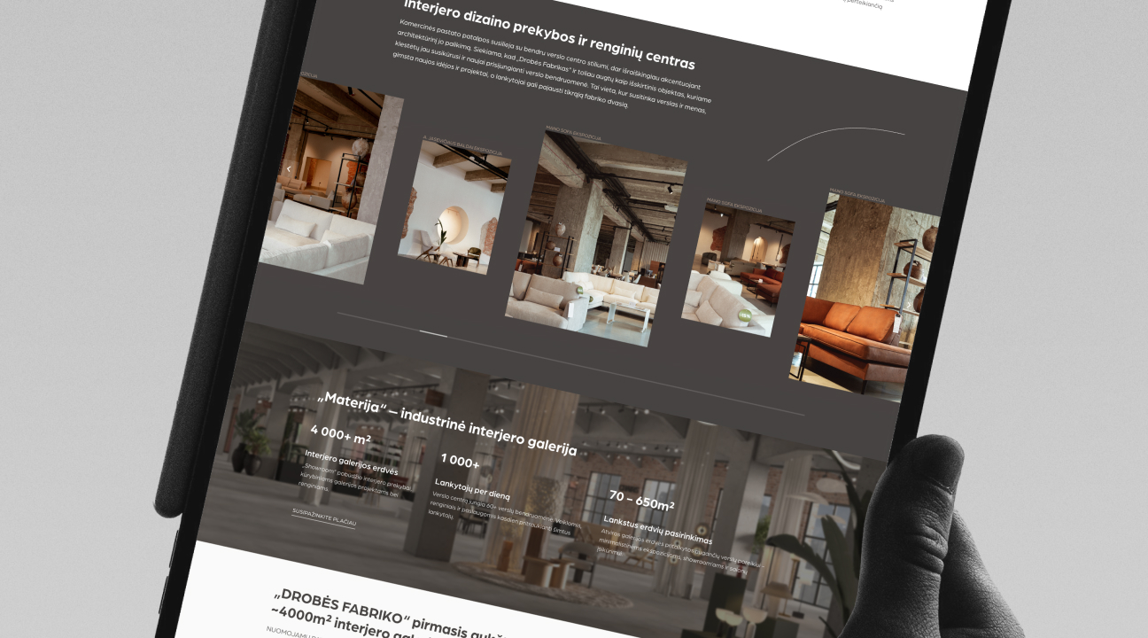 Materija neturėjo jokio skaitmeninio atspirties taško — nebuvo platformos, kuri galėtų aiškiai pristatyti galerijos koncepciją, erdvių struktūrą, nuomininkus ir pačią vietos dvasią.